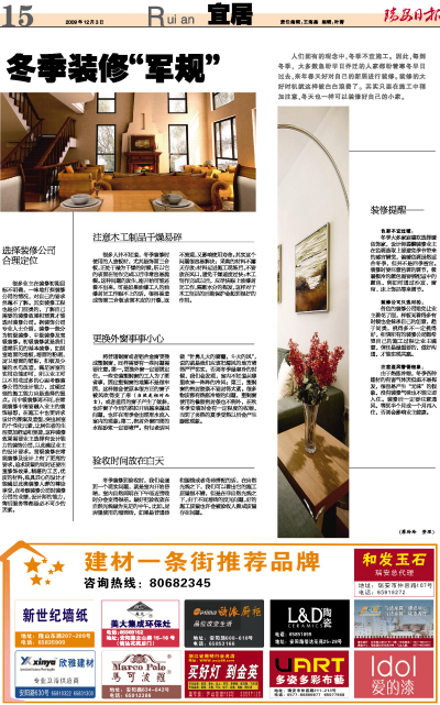 人们固有的观念中,冬季不宜施工。因此,每到冬季,大多数急盼早日乔迁的人家都盼着寒冬早日过去,来年春天好对自己的新居进行装修。装修的大好时机就这样被白白浪费了。其实只要在施工中稍加注意,冬天也一样可以装修好自己的小家。