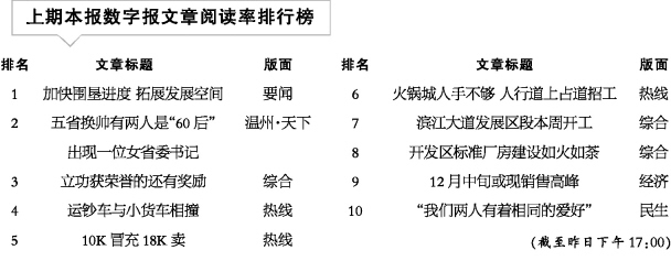 上期本报数字报文章阅读率排行榜