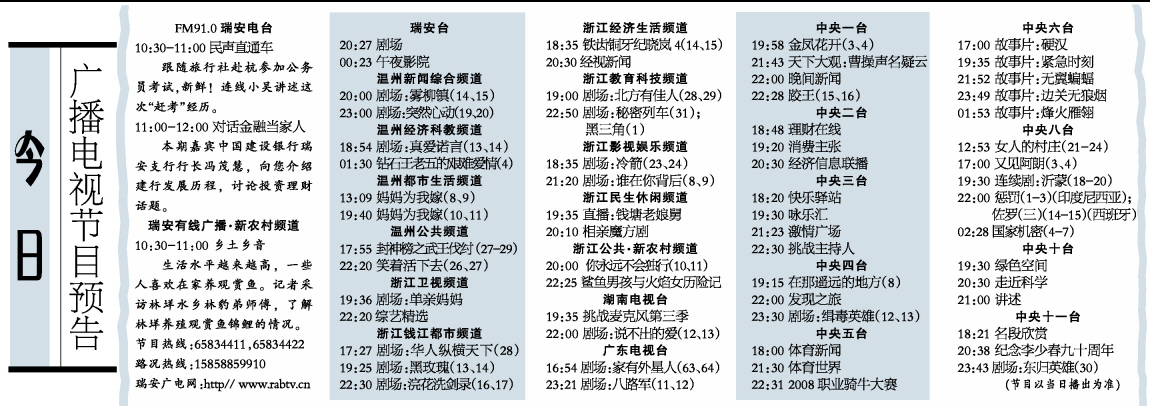 今日广播电视节目预告
