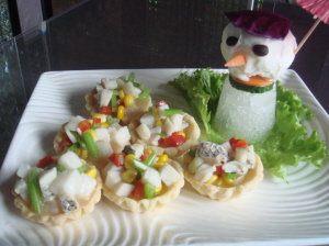圣诞将近,瑞立商务酒店推出圣诞大餐:五彩金盏鳕鱼粒、沙律酥皮圣诞虾、银鳕鱼加上九节虾,定格了这个圣诞的浪漫气息。五彩金盏鳕鱼粒形似蛋挞的底座,沙律酥皮圣诞虾的Pisa特质,决定了这两道菜必定受到潮人的宠爱。