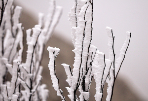 雾凇俗称树挂,是一种类似霜降的自然现象。由于雾中无数零摄氏度以下而尚未结冰的雾滴随风在树枝等物体上不断积聚冻粘的结果,表现为白色不透明的粒状结构沉积物。