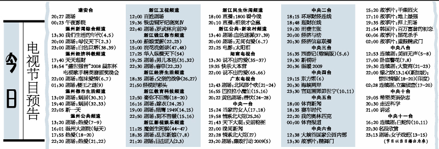 今日电视节目预告