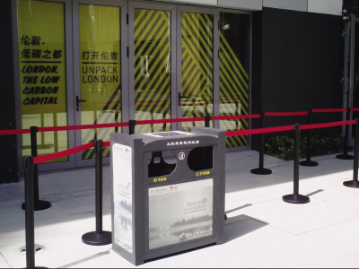 在上海世博园城市最佳实践区的伦敦零碳馆前,过往的游客无不好奇地对展馆前的垃圾桶评头论足:“这个垃圾桶有什么特别之处?”而在伦敦零碳馆播放的录像里,正在讲叙这个垃圾桶——太阳能环保公益垃圾回收箱的优点,解说员还在为游客作示范。
