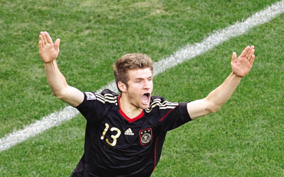 穆勒——目前最耀眼的一颗新星。有“新一代轰炸机”之称的托马斯·穆勒,与德国足球历史上著名的“轰炸机”盖德·穆勒同姓,年仅21岁,身高1米86,在今年3月对阿根廷的友谊赛中完成国家队首秀,来南非首次代表德国征战世界杯,司职左前卫,至今五场比赛场场出阵,累计出场时间近400分钟,打进4球,助攻3次,与高产射手克洛泽并列德国队射手榜首位。他在小组赛4:0大胜澳大利亚的比赛中打进一球,在八分之一决赛4:1淘汰英格兰时二球入账,在四分之一决赛4:0狂胜阿根廷时首开记录。