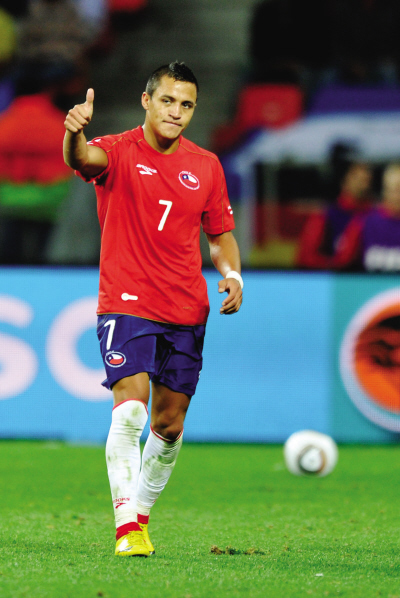 桑切斯——智利前锋,22岁,效力于意甲乌迪内斯队。桑切斯是一个典型的南美小个子天才,十分灵活,善于利于娴熟的脚下技术和出众的速度突破,盘带动作不亚于C罗,爆发力不亚于巅峰时期的小罗。在“疯子”贝尔萨的3313强力攻击体系中,桑切斯就是前场三把尖刀中最锐利的一把。尽管在南非世界杯上没有进球,他在边路的突破还是给球迷留下了深刻的印象。相信桑切斯会在不久的将来转会至某豪门俱乐部。 (据新华社)