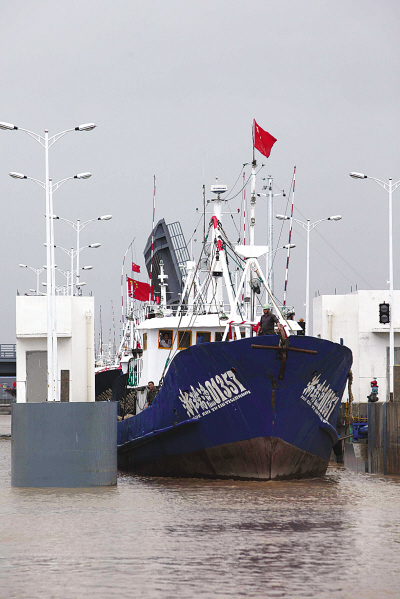 昨日,渔船进入东山下埠水闸内避风。(记者 庄颖昶)
