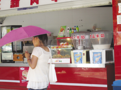 记者走访的多家饮料食品店,没有一家工作人员戴口罩工作,店老板的解释是,“现在天比较热,没人愿意戴口罩上班。”