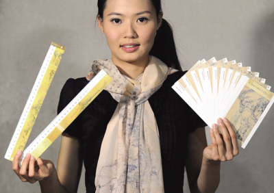 日前,台北故宫博物院授权台湾经济日报创作的一系列以《富春山居图》为主题的创意产品在台北亮相,这组产品包括富春山居丝巾、富春山居彩印直尺和一组12张的富春山居全图明信片。首批创意产品将于6月上市。(新华社发)