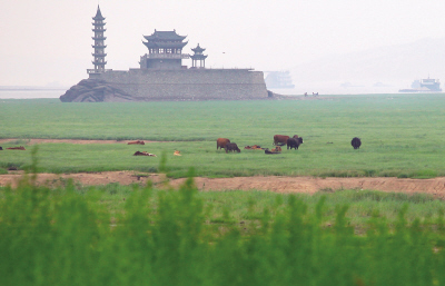 鄱阳湖景点落星墩(5月31日摄)。因水位持续下降,本应是碧波荡漾的鄱阳湖却变成了一片草原。