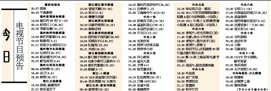 今日电视节目预告