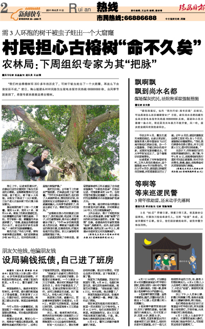 “我们村这棵榕树有300多年的历史了,可树干被虫蛀出了一个大窟窿,再这么下去肯定活不成。”前日,陶山镇澄头村村民陈先生致电本报市民热线66886688称,台风季节就要到了,希望专家来救救这棵古榕树。