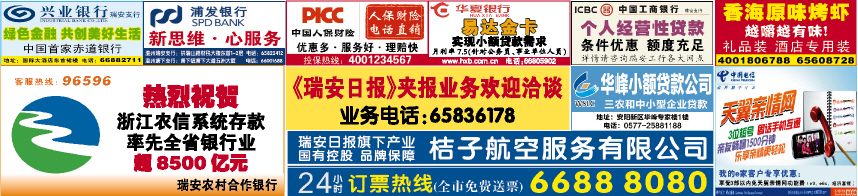 《瑞安日报》夹报业务欢迎洽谈