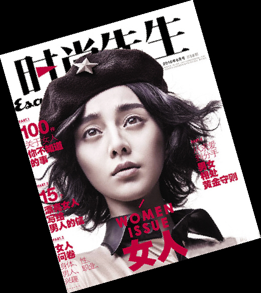在《ESQUIRE》(《时尚先生》)2010年6月号封面上,范冰冰与“伪娘”唱反调,化身切格瓦拉的她以“全男人”造型出镜。