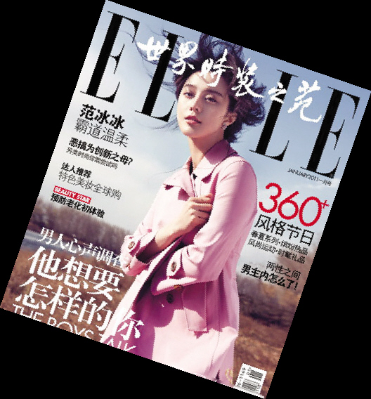 《ELLE》(《世界时装之苑》)也很钟情于范冰冰,而2011年1月号则还原了一个最原始的她。