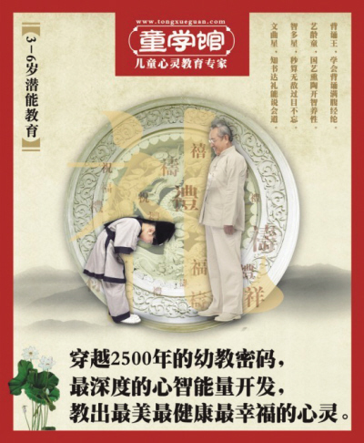 童学馆正是秉承着培养孩子“敏而好学,乐而有礼”,以程跃博士三个先行做为教育理念让我们的宝宝从小就能养成一个良好的德行,让他们懂规矩,知礼仪,懂孝顺!做到“童蒙养正”。现在特别推出的国学礼仪夏令营更是让宝宝在培养一个良好的德行基础上,让孩子通过经典诵读,名画闪贴等增加他们的识字量,扩充孩子的知识面,让孩子们有一个真正愉悦的夏天!