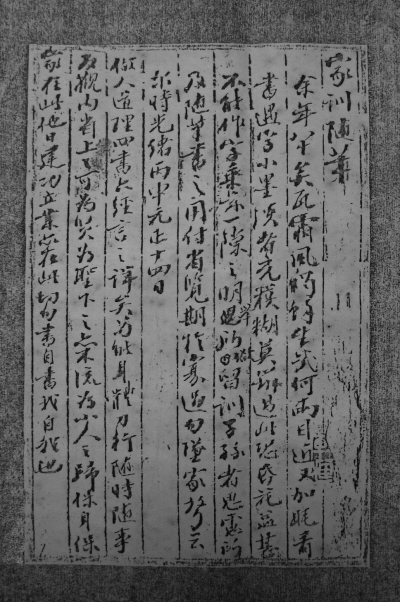 作为晚清风云人物,孙锵鸣驰骋官场20余年,到过政治生涯顶峰,也经过罢官的人生低谷,对立身处世和持家治业之道自有一番深刻见解。尽管此时的孙锵鸣已接近人生风烛之年,加上双目视力不佳,可他想乘一线光明之际,留训言给后代观览。希望子孙“期于寡过”,不要毁坏家族世传的声名美誉。故在清光绪廿二年(1896)元宵节前一天开始,每日撰写一小节,连续5天写完约3400字的《随笔》。全文行书,字体端庄遒劲,共分五个方面展开。