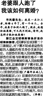 市民蔡先生:我是一名打工者,结婚4年了,有一个女儿。去年,我妻子和别人跑了。现在,我想和她离婚,可又找不到她。请问,我怎样才能和她离婚?