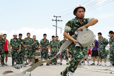 昨天,首届全市专职消防队体技能运动会举行,12支专职消防队的100多名专职消防员在赛场上一展身手。100米负重跑、1500米徒手跑、原地佩戴空气呼吸器、分水器前水带延长操、一人两盘65毫米水带连接、吸水管连接、中(轻)型泵浦车单干线出两支水枪操,经过6个项目的激烈角逐,塘下专职消防队发挥出色,夺得总分第一名。