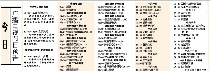 今日广播电视节目预告
