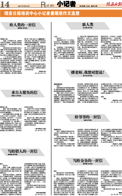我有许多兄弟姐妹,但我的弟弟不久前被你们抓走,到现在还没有一点消息,所以我冒着生命危险寻找你们的住所,我问了许多动物朋友,得知你们住在森林的深处,我决定去找一找。我历经千辛万苦终于找到了你们的小屋,但是我不但没有看到我的兄弟姐妹,而且还被你们给逮住,塞进了一个铁质的笼子里。接着我和铁笼子都被转移到一间挂着大锁的幽暗仓库里。借着微弱的月光,我看到自己的前后左右都是被抓到的动物,有狼、老虎、蛇、孔雀等等,我从这些动物朋友的口中得知,我们不久就会被你们卖掉,有的会被卖给动物园,有的会被卖给餐厅老板,还有的会被卖给一些制药厂,我们很害怕,不愿意就这样结束自己美好的生活和生命。于是,我们试图咬断笼子逃跑,可是就算我们再怎样努力都逃不开这坚固无比的大铁笼,我只能看着身边这些动物朋友一天比一天少,一天比一天消瘦。