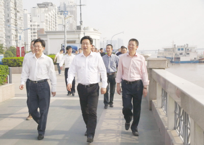 昨日下午,陈金彪一行看文化、访企业、察工程、听汇报,详细了解我市经济社会发展情况。在浙江四大古私家藏书楼之一的玉海楼,陈金彪徜徉在珍藏的书卷和文物中,品味着瑞安作为“理学名邦”的渊远历史。站在有着“瑞安外滩”之称的滨江大道上,眺望着飞云江两岸的现代建筑和沿江的美景,陈金彪称赞瑞安的城市建设有气魄、有品位。在华峰集团,陈金彪饶有兴致地察看了生产流水线,详细询问企业发展运作情况。在如火如荼的瑞祥新区建设现场,陈金彪察看重点项目开工建设情况。