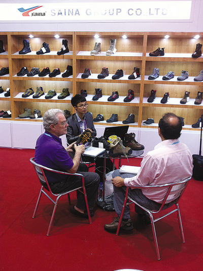 “EVA橡胶冷粘安全鞋属于中高端产品,本届广交会我们主要推广中高端产品。”孙先生介绍,由于人民币升值、劳动力成本上升,该企业产品价格平均提高了5%。普通安全鞋市场竞争较为激烈,随着产品提价,普通安全鞋的价格优势越来越小,企业国际竞争力在减弱,而中高端安全鞋的技术含量更高,更具市场竞争优势。“另一款VIBRAM鞋底的鞋子售价是普通安全鞋的2倍。”孙先生说。