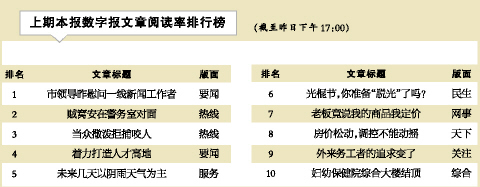 上期本报数字报文章阅读率排行榜