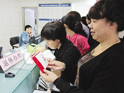 由于文化水平不高,梁女士由儿子陪着一起前来办理退休手续。拿着红彤彤的退休证,站在服务台边焦急等候的梁女士脸上露出开心的笑容。