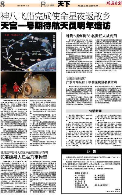 神八飞船完成使命星夜返故乡