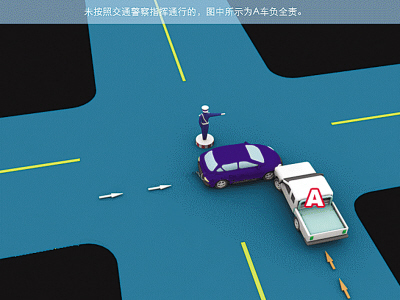 因此,此事故中,交警正在现场指挥时,也就不存在右侧来车先行的交通规则。A车未按交警的指挥,应负事故全责。