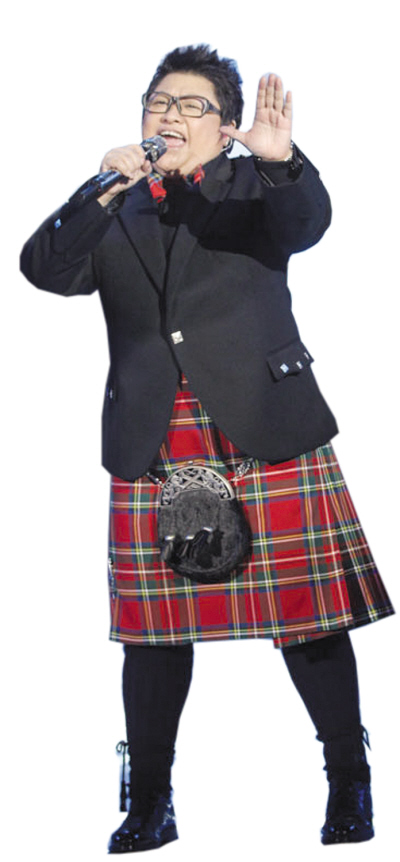 一向低调行事,从来不参加任何综艺节目的韩红,日前突然做客《快乐大本营》,并且还穿着苏格兰裙装亮相!“这是我4岁以来,第一次穿裙子!这苏格兰裙子还是看过小沈阳表演才知道的,前几天去了趟英国才发现真正的苏格兰裙装必须挂‘空挡’,不过,我还是打底了。嘿嘿!”韩红称,第一次上综艺节目,第一次穿裙子上节目,自己的两个第一次都送给了《快乐大本营》,“我今天是抱着被何炅、谢娜埋汰的心来的!”