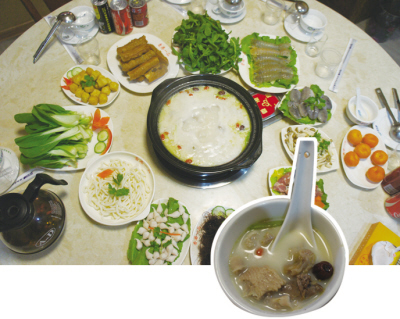 早闻深圳的华记猪肚鸡口感极好,非常有名,但却因地方太远一直没吃成。近日,友人介绍了一家华记猪肚鸡的加盟店——香港“一品”猪肚鸡,便急忙跑去品尝。冬日温暖的小店里,一锅锅热腾腾的汤品,光那气味已经熏得人食指大动,并精心搭配了各色蔬菜、菌菇,吃法与火锅相似。