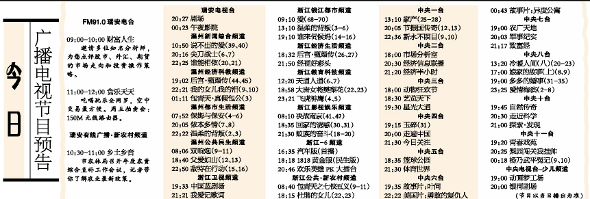 今日广播电视节目预告