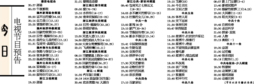 今日电视节目预告