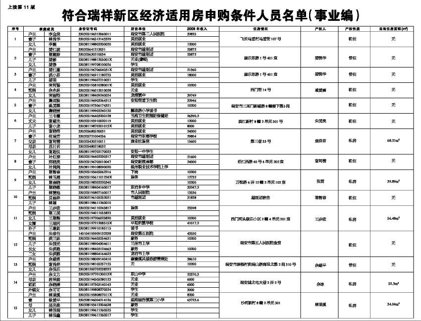 符合瑞祥新区经济适用房申购条件人员名单(事业编)