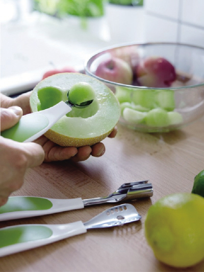 水果工具是用来对付各种水果滴。比如,有专门去果核的,有榨柠檬汁的,有勺子一样可以把果肉一勺一个球给挖出来的,方便于制作例如水果、黄油或冰淇淋球。无论是自带便当还是在家自制水果沙拉,准备这样一套处理水果的小工具也能给我们带来很大便捷,让我们在厨房得心应手,玩出花儿来!