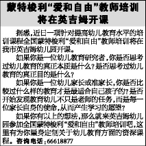据悉,近日一项针对提高幼儿教育水平的培训课程全国蒙特梭利“爱和自由”教师培训将在我市英吉姆幼儿园开课。