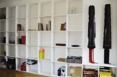 整面墙的书架:“书房的整面墙都做成书架”当木工师傅听到这句话的时候,还以为自己听错了,怎么可能有人要整个墙做成书架?没错!这是嫒嫒的人生梦想之一。于是,这个巨大的书架成为了该师傅人生中迄今为止做过的最大的一排书架。书架分割成很多个格子,放书,放装饰品,放古琴。