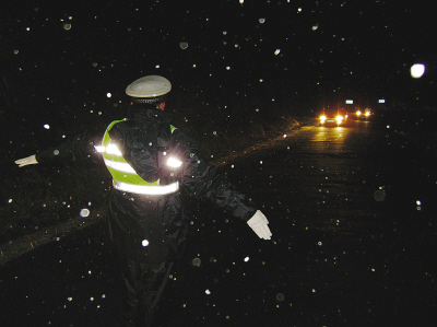 直至凌晨4时,车流才慢慢稀疏了。我们冒雨雪在山道上已经连续指挥了8个多小时,饿了就啃块面包、渴了就喝口冰冷的矿泉水,困了就用双手擦擦脸,时刻关注着路况、维持着秩序。