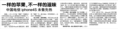 这不,电信版iPhone4S刚刚发布,精明的“果粉”们,就已经从一样的苹果中,品出不一样的味道--