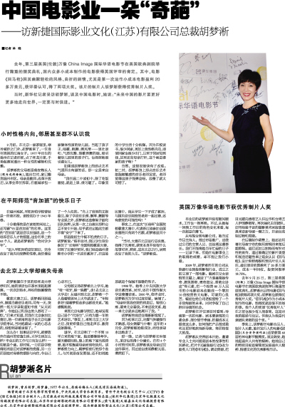 当时,新华社记者采访胡梦淅,谈及中国电影时,她说:“未来中国的影片要更好更多地走向世界,一定要与时俱进。”