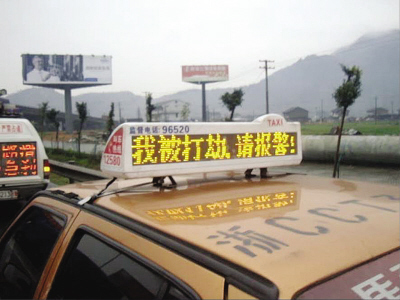 情况危急!高速交警二大队民警迅速出动,一路往福建方向追击。四五分钟后,民警在三都岭隧道附近发现了这辆遭“劫持”的出租车。只见该车车顶显示屏上显示“我被打劫,请报警”的黄色字体。据悉,黄色字体只有当出租车司机遭遇劫持等意外情况时,才会紧急使用。司机可以偷偷按下警示器,在不被歹徒发现的情况下,向路人寻求帮助。