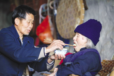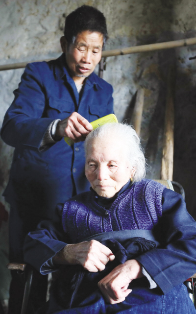 听说记者来采访蔡金当,村民都围拢过来。村妇联主任胡美钗说:“阿当真是不简单,自己已经70开外了,还要照顾瘫痪丈母娘的吃、喝、拉、撒、睡,包括梳头、洗脸、洗脚,甚至搓澡。”听到众人的夸赞,蔡金当只低着头憨憨地笑。