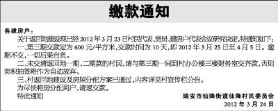 关于返回地建设现已经2012年3月23日村民代表、党员、建房户代表会议研究决定,特通知如下: