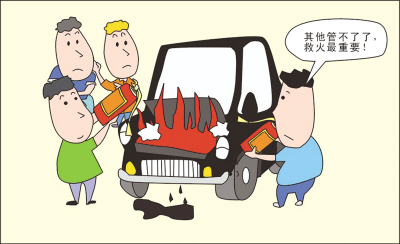 不一会儿,黎清也拿着灭火器到了,“我到达失火地点的时候,发现汽车正在滴油,顿时就害怕了,手脚发软;要是车子爆炸了怎么办,但是看到老祝和刘钰都在车旁猛喷灭火器,自己也硬着头皮上去了。”黎清回忆,当时太紧张了,刚开始使用灭火器时,喷在了自己手上,立即感觉一阵刺痛。