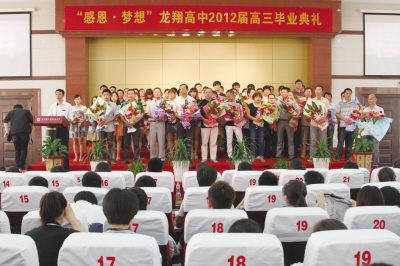 6月5日上午,龙翔高中举行2012届高三毕业典礼仪式。校长蔡国泉,董事长陈金林,副校长杨明星、张新艳、杨文发携全体高三教师、高三毕业生及10位家长代表共700多人参加了典礼仪式。