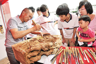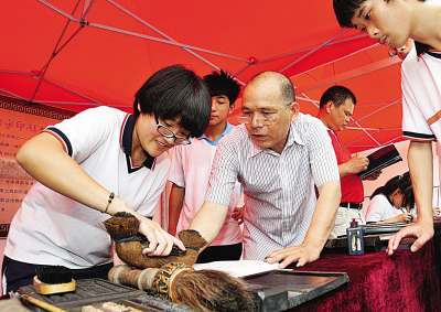 在木活字印刷术展示现场,有学生当场学习印刷字模的制作:用细细的毛笔,将字反写在小小的字模上,再用刻刀按笔画的顺序将字型刻出来。孩子们对木活字表现出来的兴趣,让木活字传承人、市活字印刷协会会长王志仁很是欣慰:“木活字印刷术一定会好好传承下去的。”