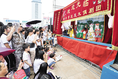 “你也来看‘木头戏儿’啊。”“是啊,我带孩子来看。”市双凤木偶戏剧团的戏还未开演,临时搭建的舞台前已被市民围了个水泄不通。市民口中的“木头戏儿”即木偶戏,起源于汉代,它是由演员借助木偶在幕后操纵的一种戏剧。