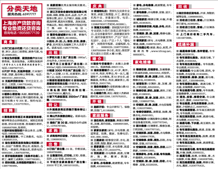 ■ 天地通公司:家政、物业、拓荒、外墙清洗等,www.tdtong.net,66600871。