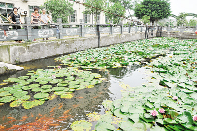 昨天早上,塘下新坊村老人公寓内的池塘里,几朵睡莲羞答答地探出粉色的花瓣来,青青的莲叶间一群红色的鲤鱼来回穿梭,好不快活。村民王兴福介绍,这些睡莲种下已有4年,每年6月气温升高后都会开花,灿烂整个夏季,这些鲤鱼是1年前放养在池塘里的。
